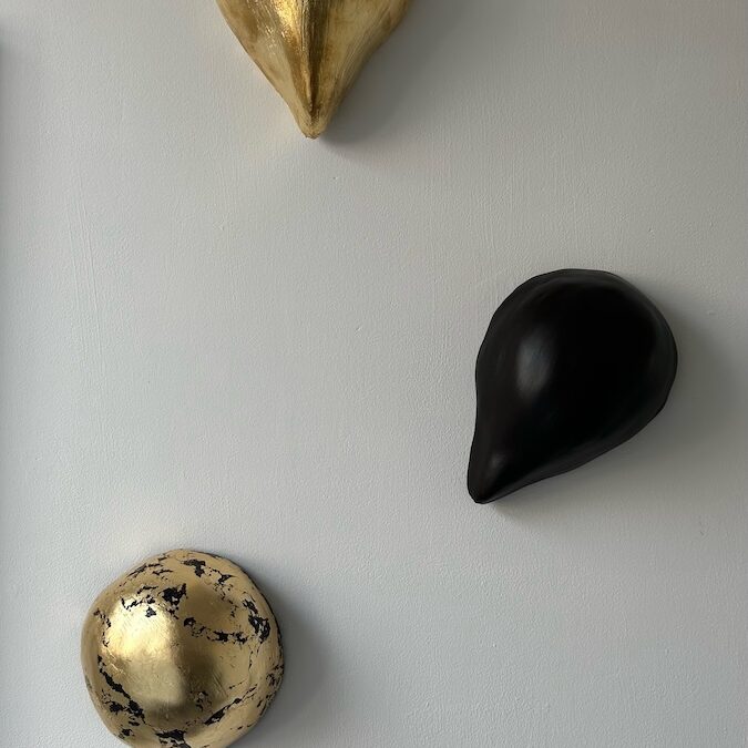 De druppels: Muursculpturen ter decoratie voor bijvoorbeeld een entree. Deze druppels hebben een diameter van ongeveer 17 a 20 cm en zijn in elke gewenste kleur te bestellen. Levertijd: 4 – 6 weken Circa € 150 per stuk