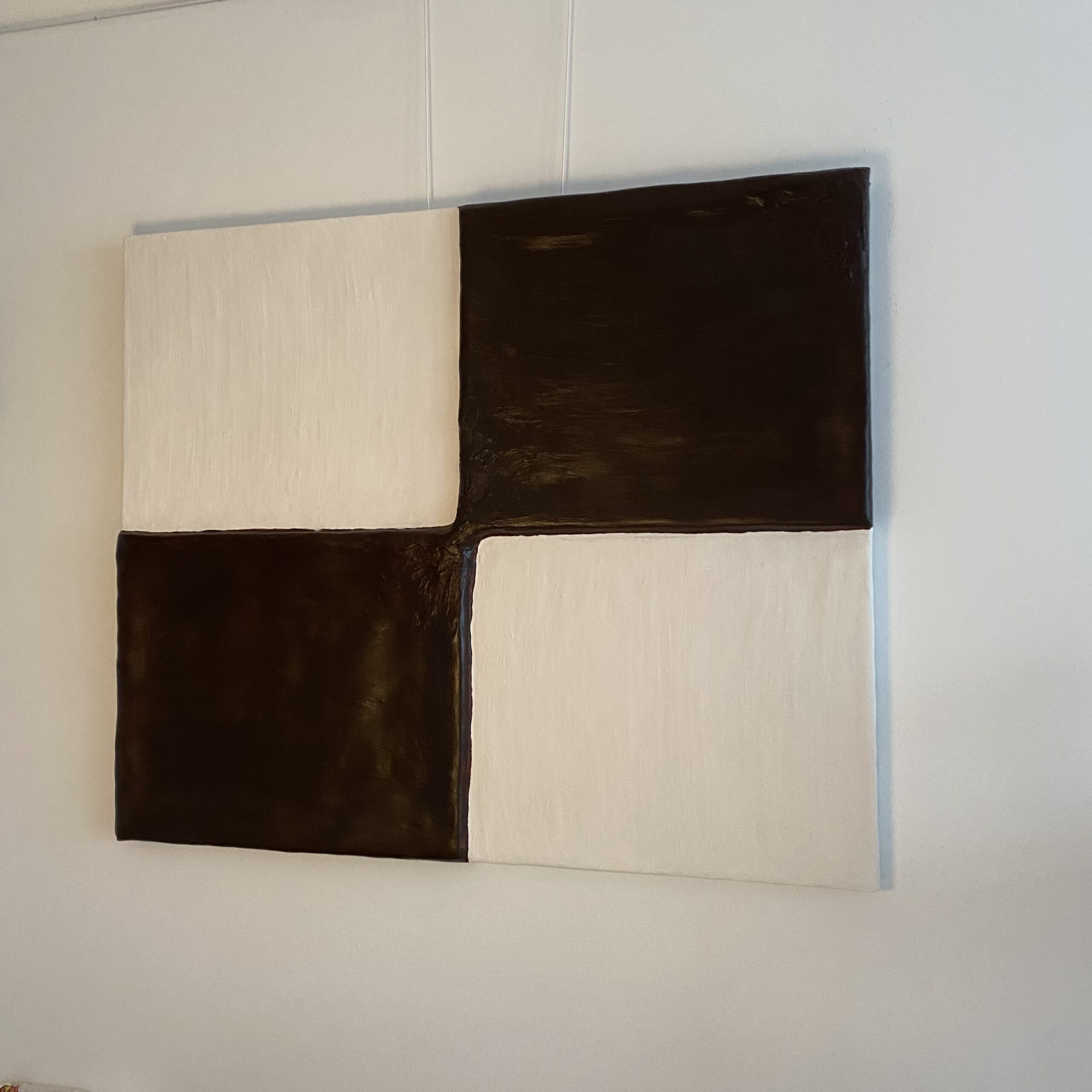 Muursculptuur in de kleuren beige en bruin.